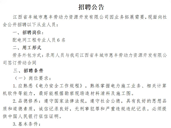 江西省丰城市惠丰劳动力资源开发有限公司因业务拓展需要,现面向社会公开招聘以下从业人员: